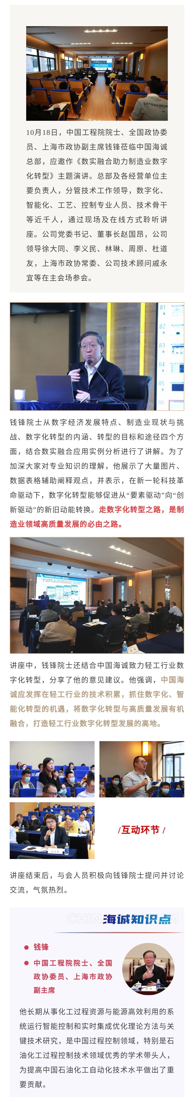 中國(guó)海誠(chéng)邀請(qǐng)錢鋒院士講授數(shù)字化轉(zhuǎn)型專題培訓(xùn)課