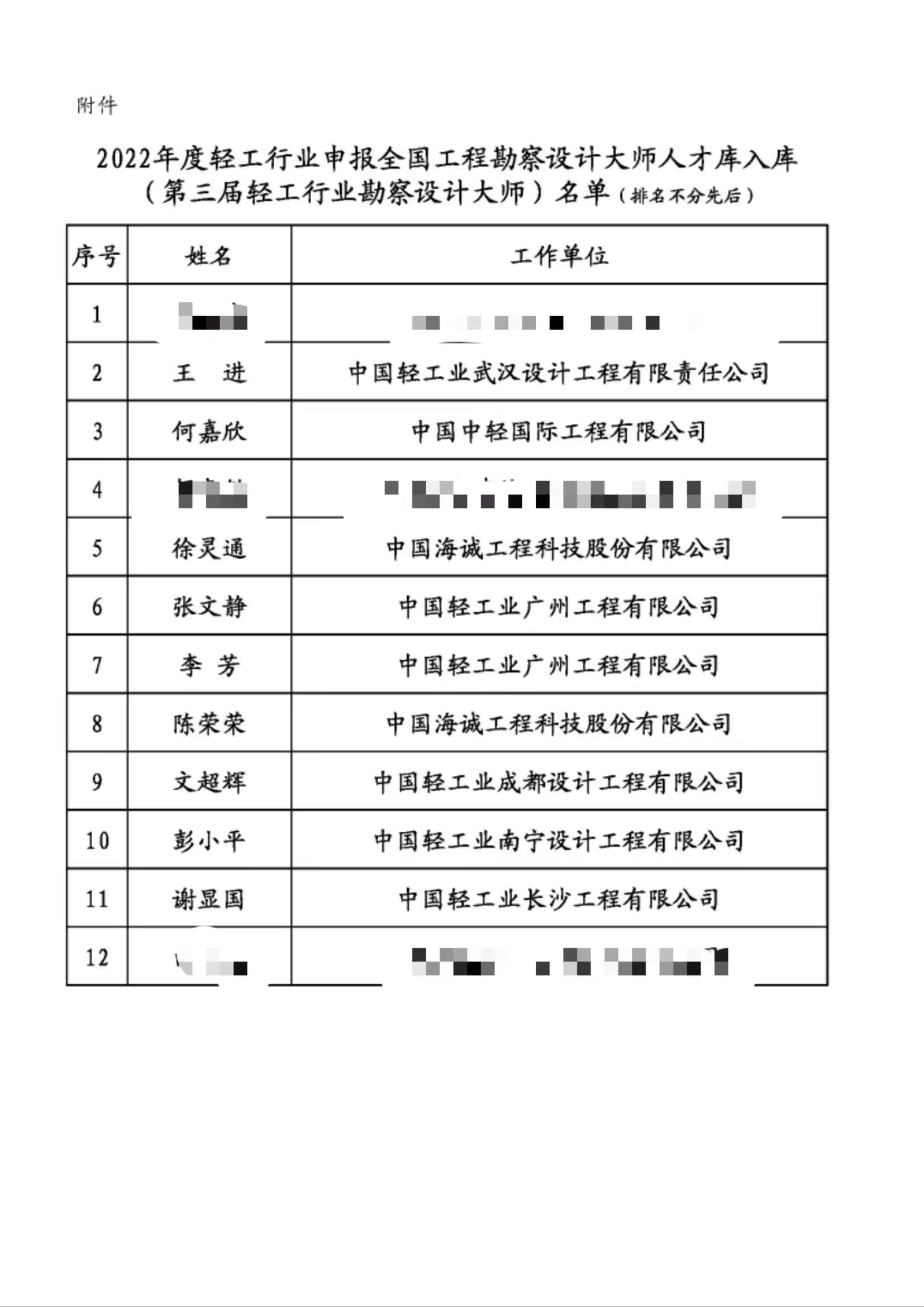 近日,中國輕工業(yè)工程建設(shè)協(xié)會發(fā)布“關(guān)于2022年度入選申報全國工程勘察設(shè)計大師人才庫(第三屆輕工行業(yè)勘察設(shè)計大師)名單的公告”, 12位全國輕工行業(yè)勘察設(shè)計大師名單中,中國海誠及所屬單位入選9位。