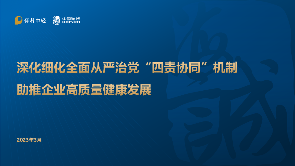 3月27日上午,中國海誠黨委在上海總部召開2023年度第一次理論中心組(擴(kuò)大)學(xué)習(xí)會(huì),深入學(xué)習(xí)貫徹全面從嚴(yán)治黨體系要求。保利中輕副總經(jīng)理、中國海誠黨委書記、董事長趙國昂主持會(huì)議。