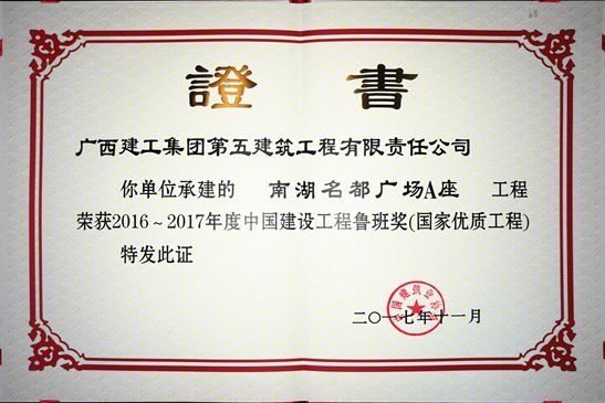 近日,海誠(chéng)股份南寧公司監(jiān)理的工程項(xiàng)目—南湖名都廣場(chǎng)榮獲中國(guó)建設(shè)監(jiān)理協(xié)會(huì)授予“2016-2017年度魯班獎(jiǎng)”。魯班獎(jiǎng)是中國(guó)建筑行業(yè)工程質(zhì)量最高榮譽(yù)獎(jiǎng),這是公司繼廣西壯族自治區(qū)人民檢察院業(yè)務(wù)技術(shù)偵查綜合樓(2005年獲魯班獎(jiǎng))、廣西南寧市國(guó)土交易綜合樓(2011年獲魯班獎(jiǎng))后,再次獲此殊榮,具有里程碑的意義。