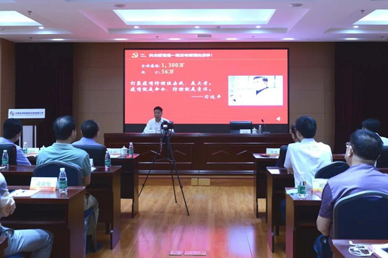 2020年7月17日下午,中輕集團(tuán)黨委委員、紀(jì)委書記崔久衡以《讓黨旗在防控疫情斗爭(zhēng)第一線高高飄揚(yáng)》為主題,從一個(gè)黨員就是一面旗幟,一個(gè)支部就是一個(gè)堡壘;怎么干?黨員不松勁,群眾才更有信心等方面進(jìn)行闡述,為皮革院黨員干部講了一堂生動(dòng)的黨課。中輕集團(tuán)紀(jì)檢監(jiān)察部主任羅杰、皮革院領(lǐng)導(dǎo)班子成員、助理以上中層干部、黨支部書記、支委及團(tuán)支部委員等參加學(xué)習(xí),皮革院黨委書記陳鐳主持本次專題黨課學(xué)習(xí)會(huì)。