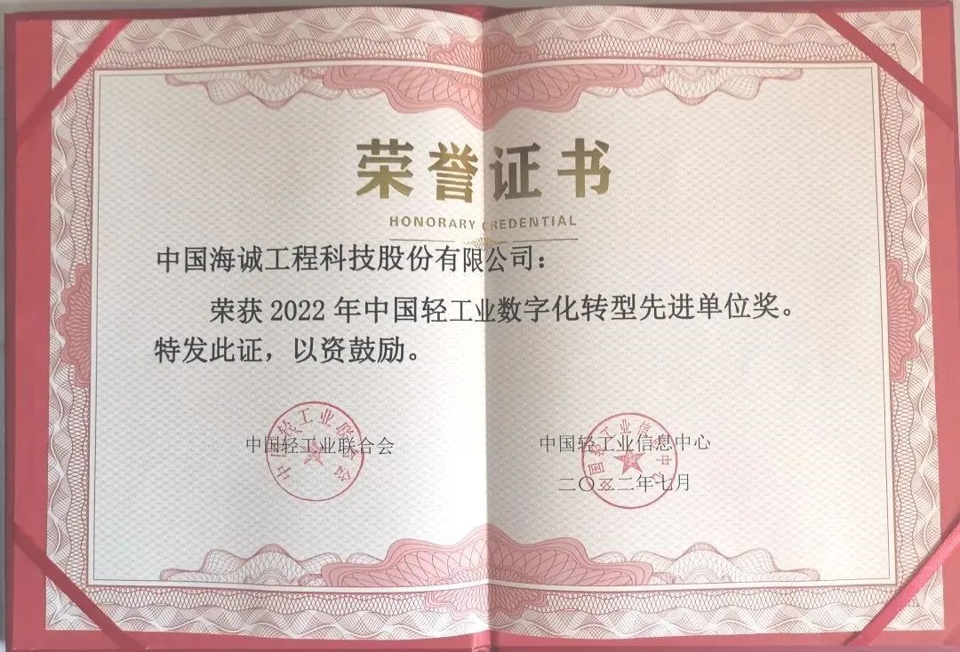 保利中輕中國(guó)海誠(chéng)工程科技股份有限公司(簡(jiǎn)稱中國(guó)海誠(chéng))、中國(guó)海誠(chéng)廣州公司、中輕長(zhǎng)泰(長(zhǎng)沙)智能科技股份有限公司(簡(jiǎn)稱中輕長(zhǎng)泰)獲中國(guó)輕工業(yè)數(shù)字化轉(zhuǎn)型先進(jìn)單位稱號(hào);中國(guó)海誠(chéng)總部EIM數(shù)創(chuàng)中心總經(jīng)理潘志祥、廣州公司董事長(zhǎng)羅軍獲中國(guó)輕工業(yè)數(shù)字化轉(zhuǎn)型先進(jìn)個(gè)人稱號(hào)。