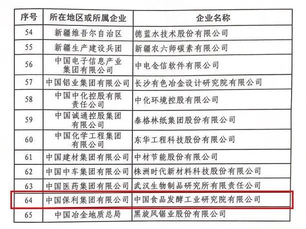 在黨的二十大勝利閉幕不久,工業(yè)和信息化部公布了2022年國家技術(shù)創(chuàng)新示范企業(yè)認(rèn)定名單,全國有65家企業(yè)入選,保利中輕所屬中國食品發(fā)酵工業(yè)研究院憑借在食品行業(yè)的自主創(chuàng)新力和市場競爭力登上榜單,被認(rèn)定為2022年“國家技術(shù)創(chuàng)新示范企業(yè)”。