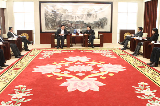 2011年4月13日上午,陳鄂生董事長在集團(tuán)總部貴賓室會見了來訪的江蘇省徐州市委常委、新沂市委書記陳德榮、副市長婁可亮等一行。